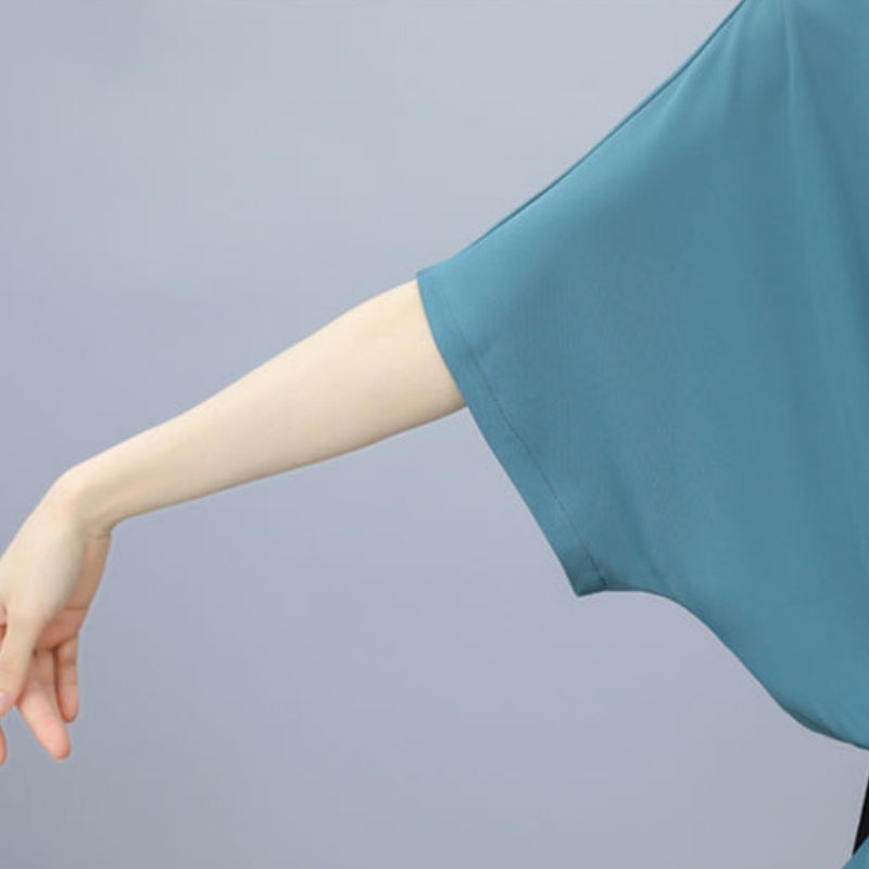 PUHA ÉS KÉNYELMES ANYAG: Könnyű, légáteresztő anyagból készült, amely gyengéd a bőrhöz. A sima textúra még a meleg napokon is kényelmet biztosít, míg az áramló drapéria egész nap ápolt és elegáns formát tart.