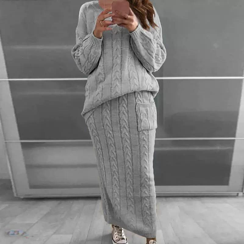 KÉNYELMES MELEG – A vastag kötött anyagból készült pulóver szett tartós meleget biztosít a hideg napokon. A gondosan szőtt szálak visszatartják a hőt, ugyanakkor lélegzőek, így kényelmes viseletet biztosítanak beltéren és kültéren egyaránt. Ez a szett az egész szezonban kényelmes és magabiztos viseletet biztosít.