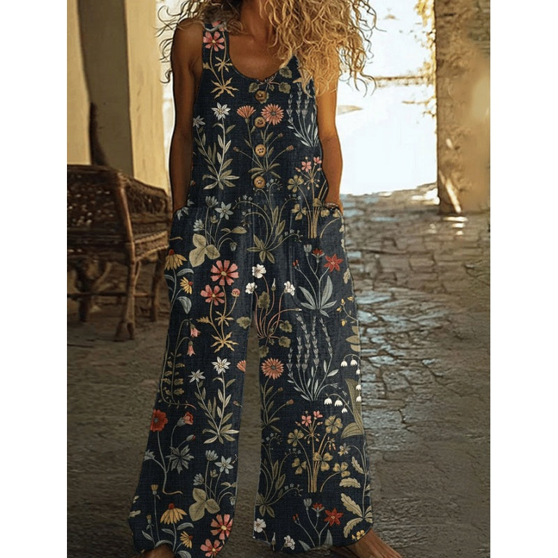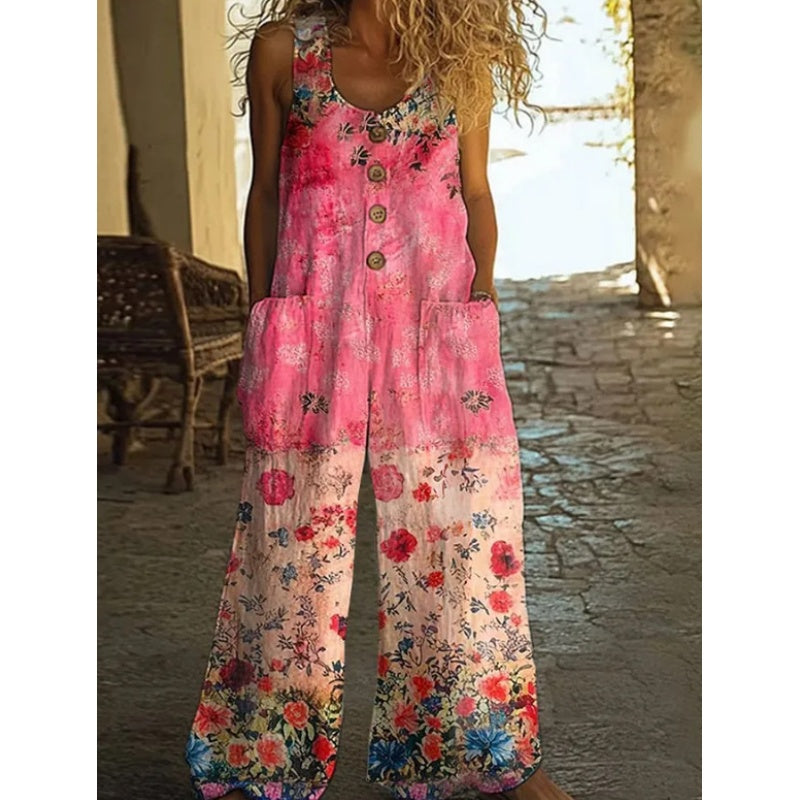 ÉLÉNK RETRO NYOMTATOTT DESIGN: A Casual Retro nyomtatott zsebpulóver szemet gyönyörködtető virág- és levélmintákkal rendelkezik rózsaszín, fehér és sötétkék alapokon, játékos, mégis kifinomult megjelenést kölcsönözve. Az élénk nyomatok nosztalgikus hangulatot idéznek, miközben időtlenek maradnak, így ez a kezeslábas tökéletes a nyári kirándulásokhoz, strandoláshoz vagy alkalmi összejövetelekhez.