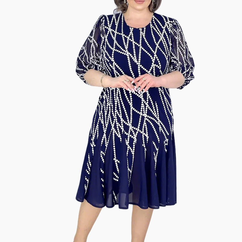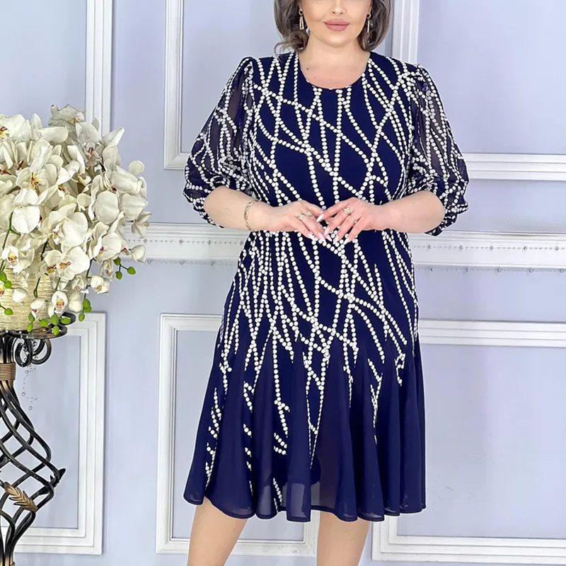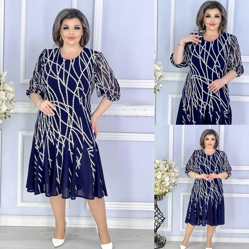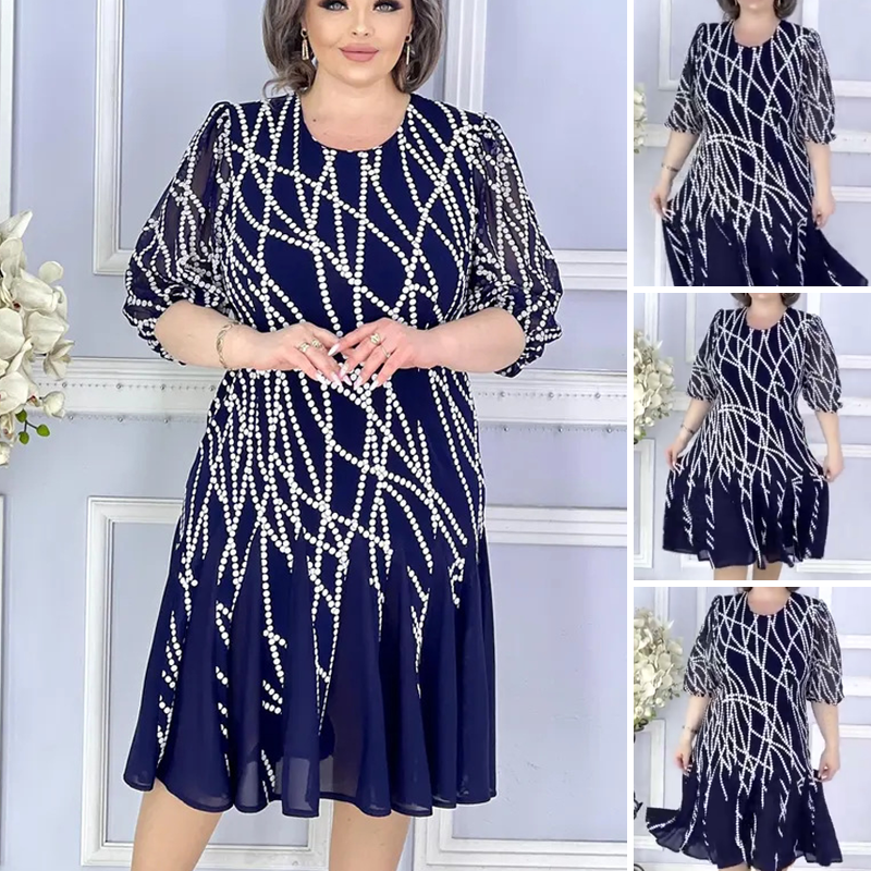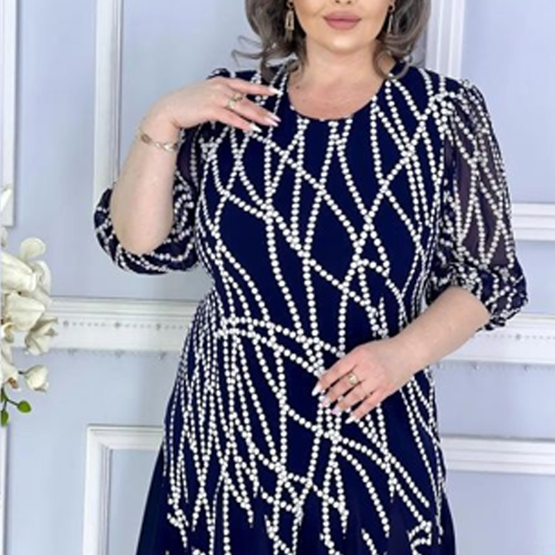 KIFINOMULT GYÖNGYHÁZMINTÁS DESIGN A LUXUS JEGYÉBEN: Az elegáns, gyöngyök által inspirált mintával ellátott ruha a valódi gyöngyök csillogó megjelenését utánozza, anélkül, hogy súlya vagy törékenysége nagyobb lenne. Ez a finom, mégis kifinomult részlet fokozza az általános esztétikát, és fényűző befejezést biztosít.