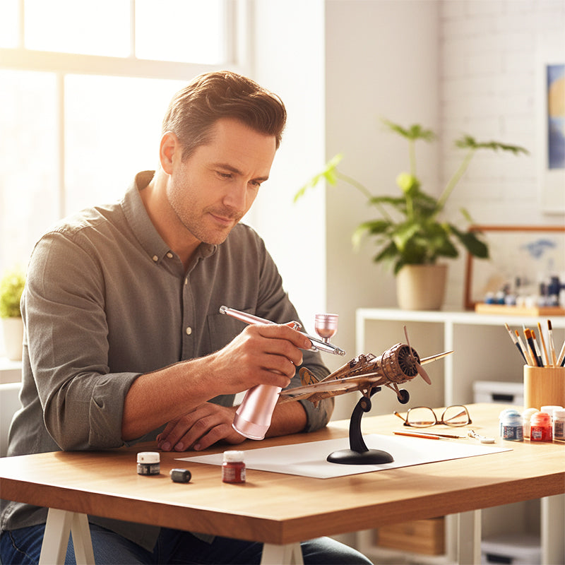 ÁLLÍTHATÓ HÁROMFOKOZATÚ NYOMÁS - Válasszon három nyomásbeállítás közül (20, 23, 27 PSI) a tökéletes kontroll érdekében. Ez lehetővé teszi, hogy könnyedén alkalmazkodjon a finom, részletes munkákhoz, mint például a sminkelés, vagy a szélesebb felületekhez, mint például a tortadíszítés, biztosítva ezzel a tökéletes eredményt.