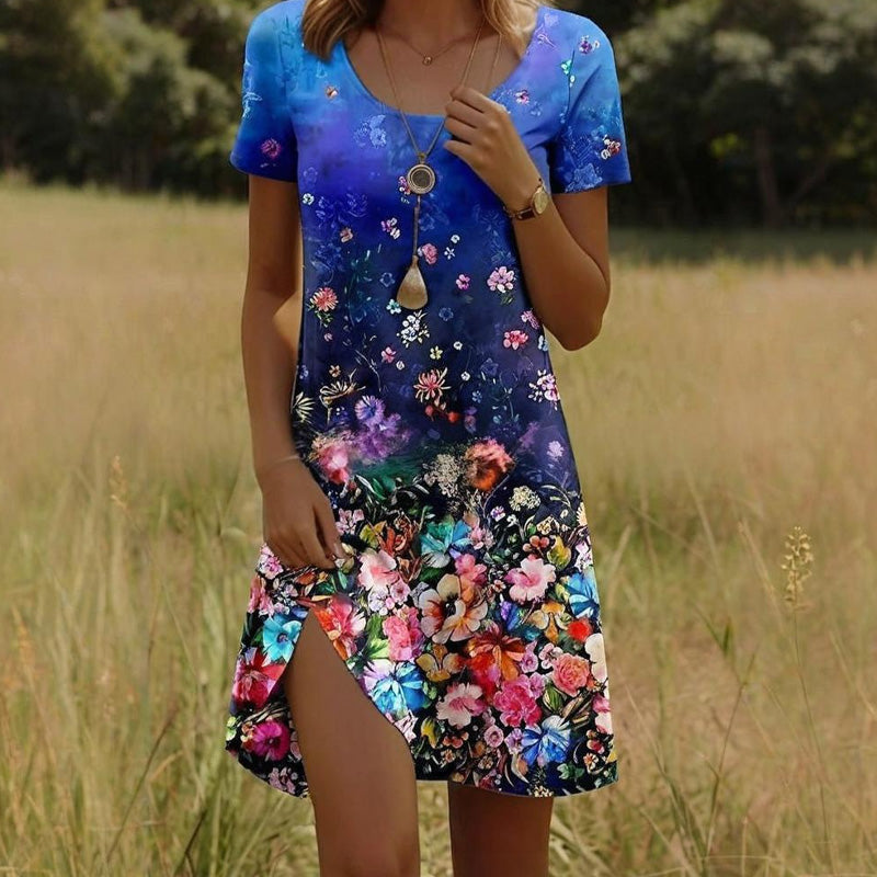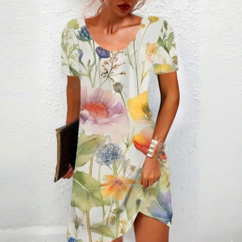 A TERMÉSZET SZÉPSÉGE MINDEN ÖLTÉSBEN - Hagyd, hogy ez a ruha legyen a vászon - a vibráló virágok úgy virágoznak az anyagon, mint egy napsütötte kert. Minden egyes finom szirom és inda a nyár könnyed romantikáját sugározza, tökéletes piknikhez vagy naplementés koktélokhoz.