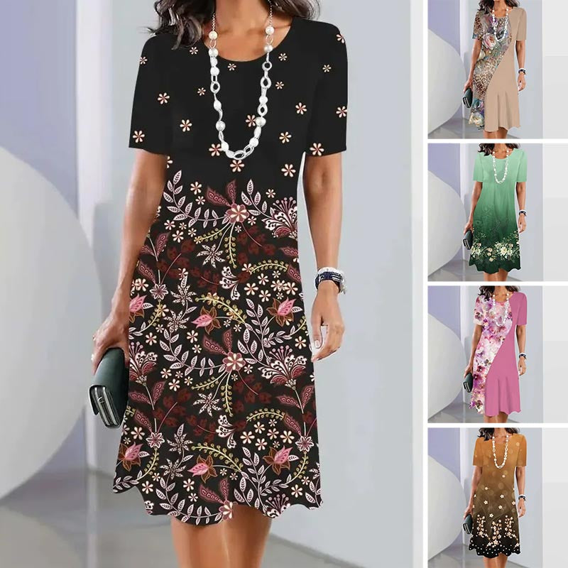 A csomag tartalmaz 1 * Elegáns virágmintás kerek nyakú ruha