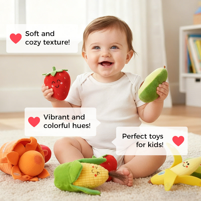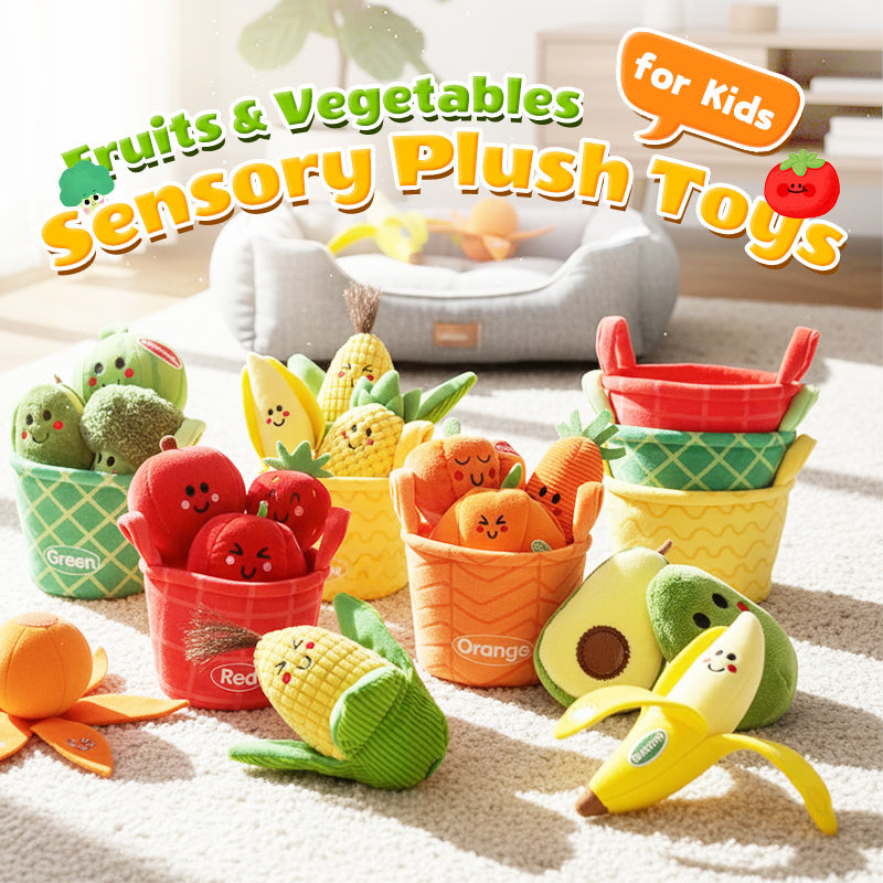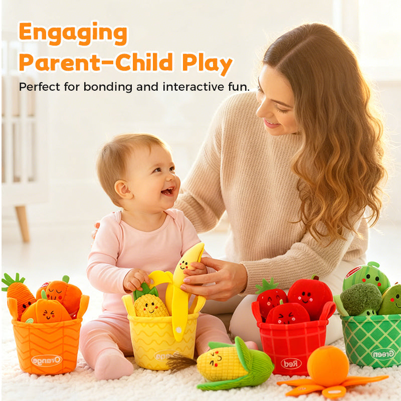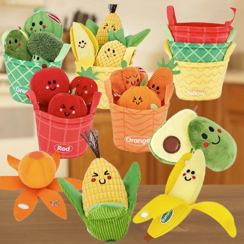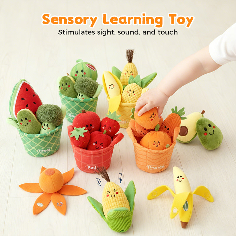 A csomag tartalma: 1 * Gyümölcsök és zöldségek érzékszervi plüss játékok gyerekeknek