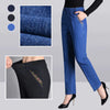 1 * Női farmer oldalsó zsebekkel és elasztikus derékpánttal
