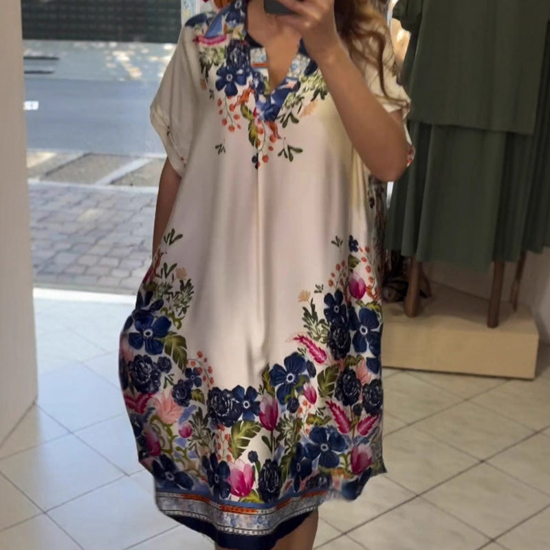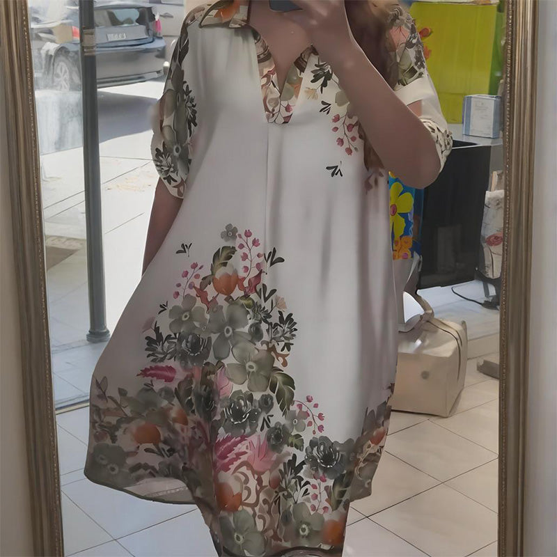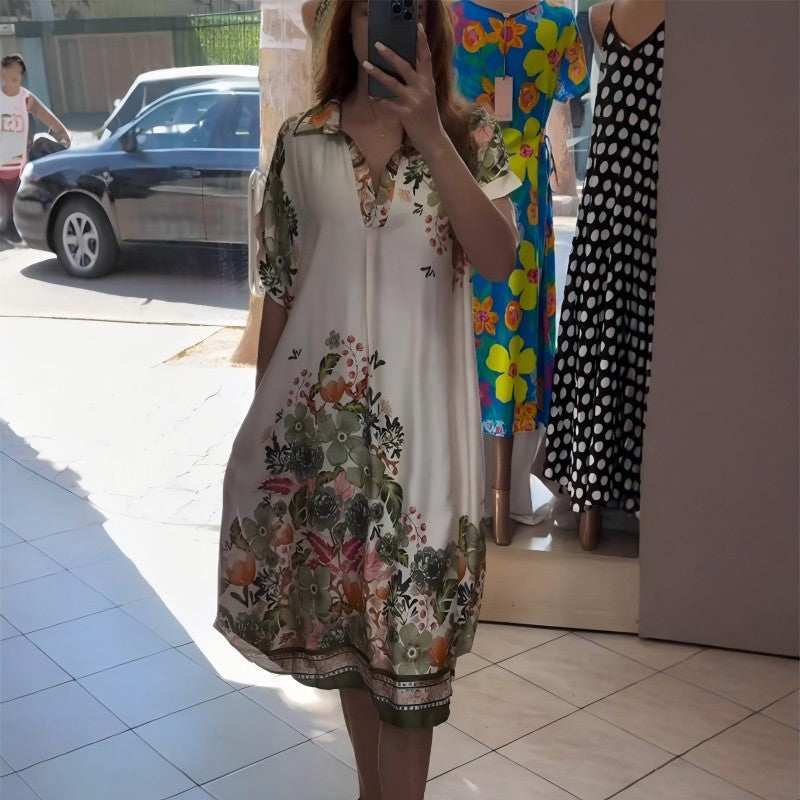 1* Laza V-nyakú hajtókás tervezés virágos ruha
