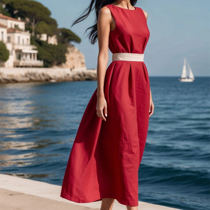 ELEGÁNS ÉS ALAKFORMÁLÓ – Az ujjatlan kerek nyakkivágás időtlen vonzerőt biztosít, míg a világossárga derékkötő kiemeli a derekát, gyönyörűen kiegyensúlyozott sziluettet alkotva. Egy finom érintés, amely minden testalkatnak hízeleg.