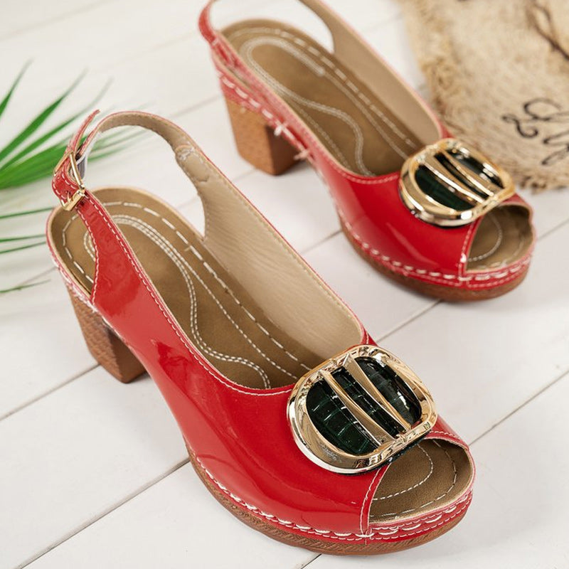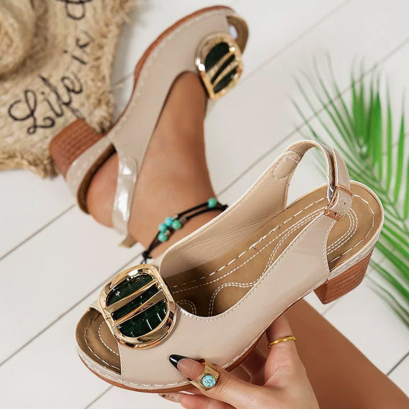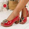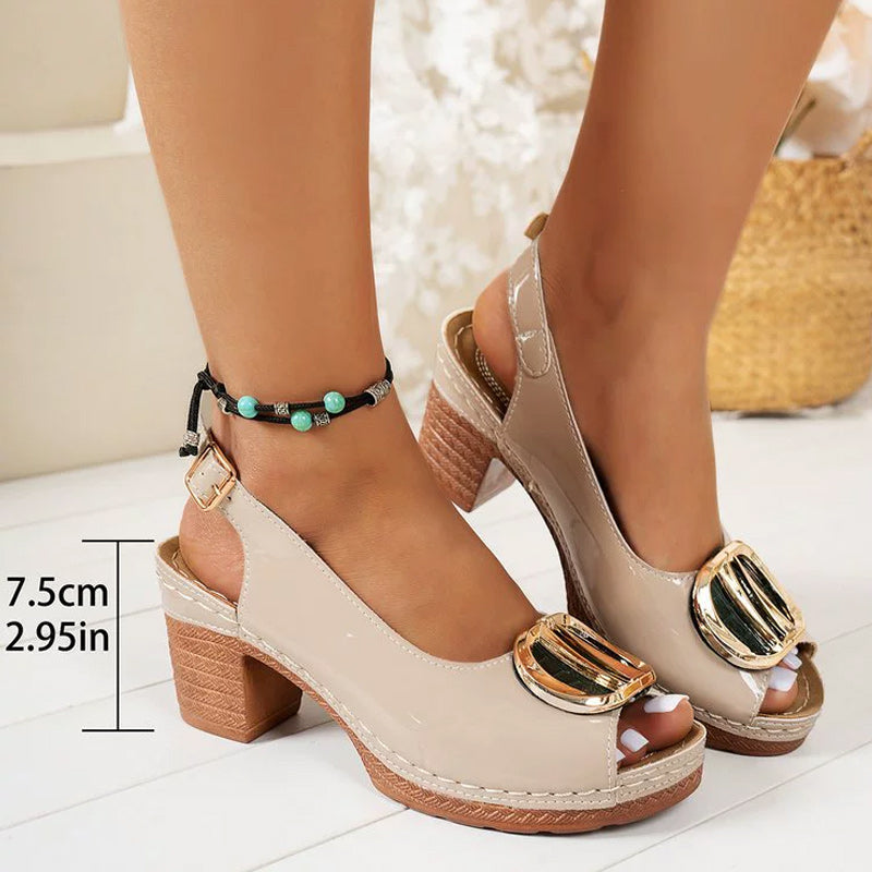 1 Pár x Fém csatos pántos Peep-toe középmagas szandálok