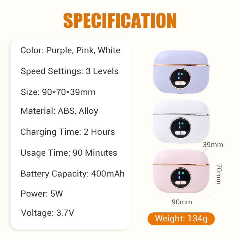 HÁROM SEBESSÉGES VEZÉRLÉS: Három állítható sebességbeállítással rendelkezik, hogy különböző körömtípusokhoz és vastagságokhoz is alkalmazkodjon. Ez lehetővé teszi a puha vagy kemény körmök sima, tiszta kialakítását, kényelmes és hatékony manikűr élményt biztosítva.