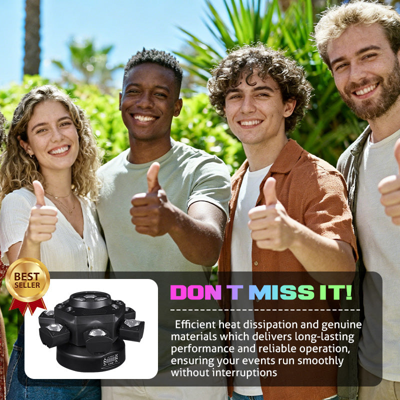 DINAMIKUS HATKARÚS KIALAKÍTÁS – Hat függetlenül mozgó karral rendelkezik, amelyek mindegyike erőteljes fénynyalábot vetít. Ez lenyűgöző, a termet betöltő effektusokat és energikus fényjátékokat hoz létre, amelyek minden közönséget magával ragadnak, és fokozzák az esemény hangulatát.