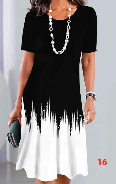 Klasszikus kerek nyakkivágás és rövid ujjak: Ez a ruha időtálló kerek nyakkivágással és rövid ujjakkal rendelkezik, így sokoldalúan kiegészítheti bármelyik ruhatárat. Tökéletes a melegebb napokra, kényelmet és stílust kínál egyben.