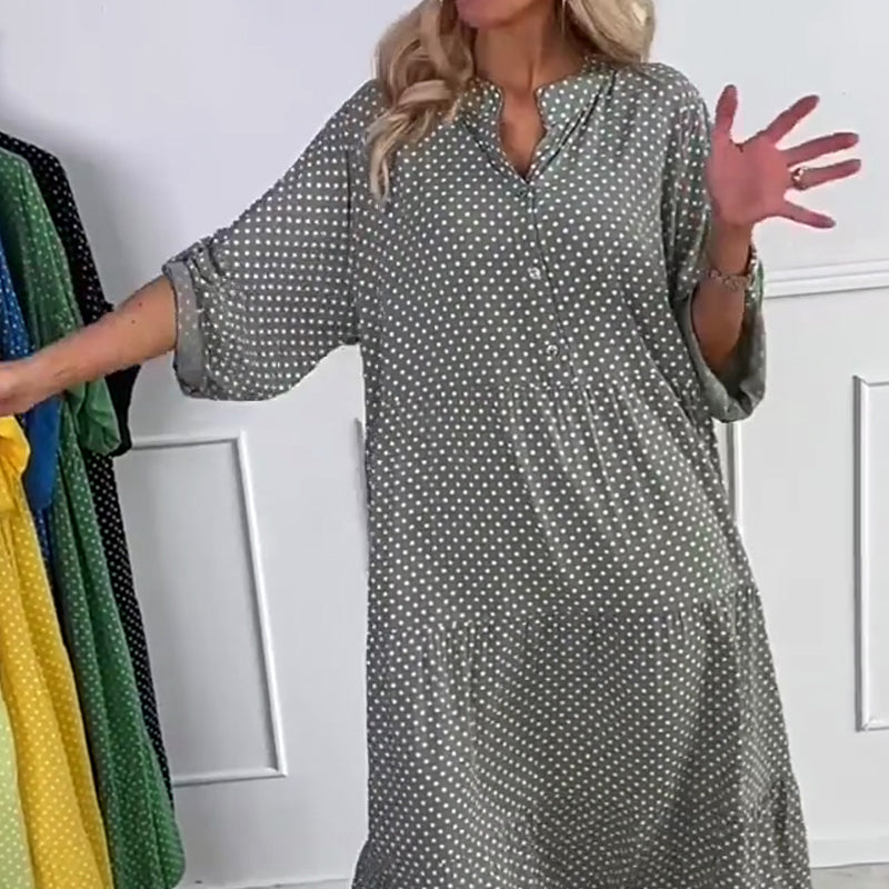 A csomag tartalmazza: 1× Női pöttyös pöttyös gomb Loose Fit ruha