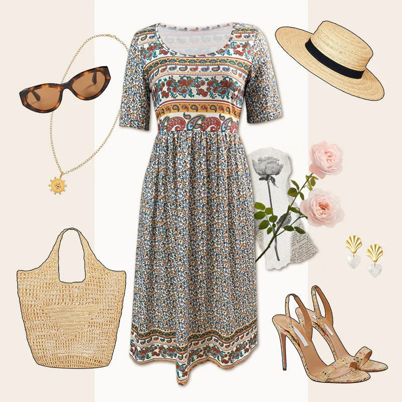 A csomag tartalmazza : 1 * Női elegáns bohém nyomtatott ruha