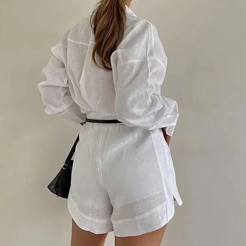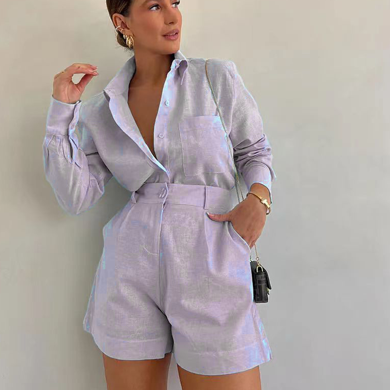 Csomag tartalmazza: 1 * Női elegáns, hosszú ujjú ing és rövidnadrág kétrészes szett