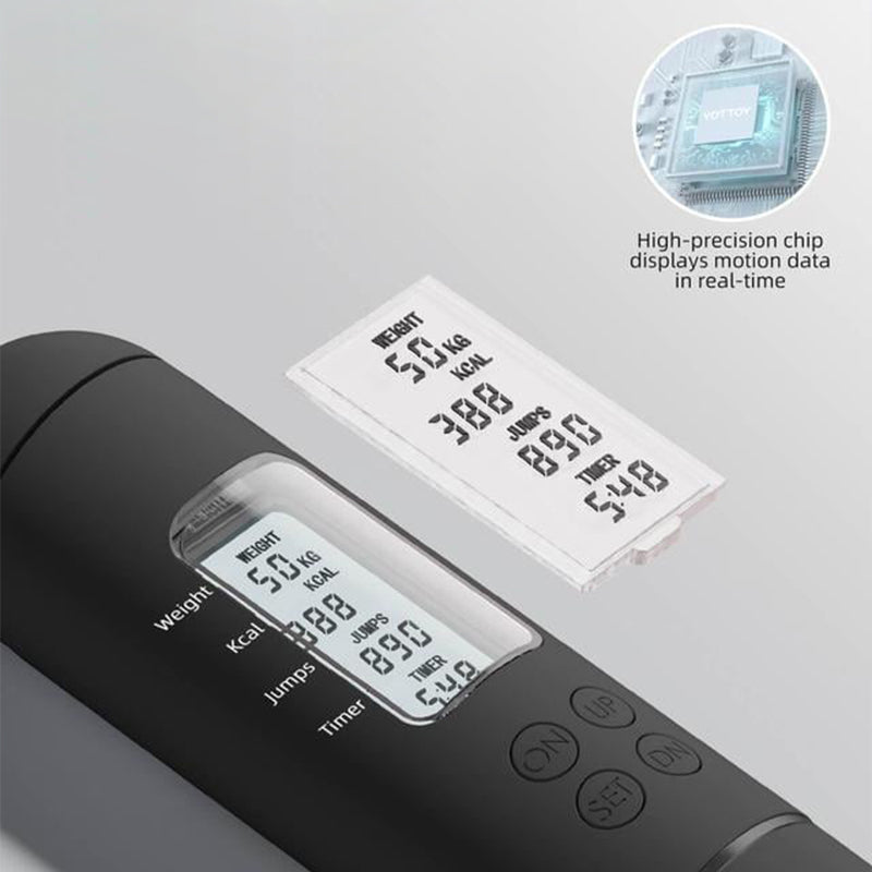 [LED kijelző] A digitális ugrókötél HD LED kijelzővel rendelkezik, amely mutatja az időt, a testsúlyt, az elégetett kalóriákat és az ugrások számát. Állítsa be a testsúlyát, és kövesse nyomon az időt, az ugrások számát és az elégetett kalóriákat, hogy hatékonyabban érje el fitness céljait.