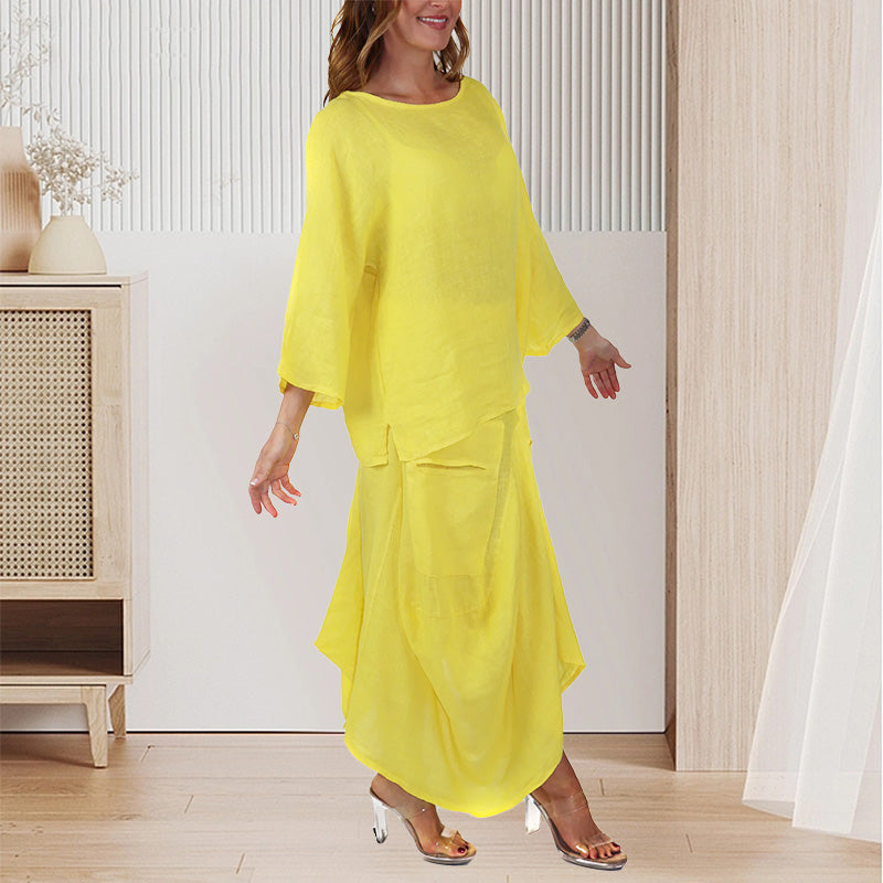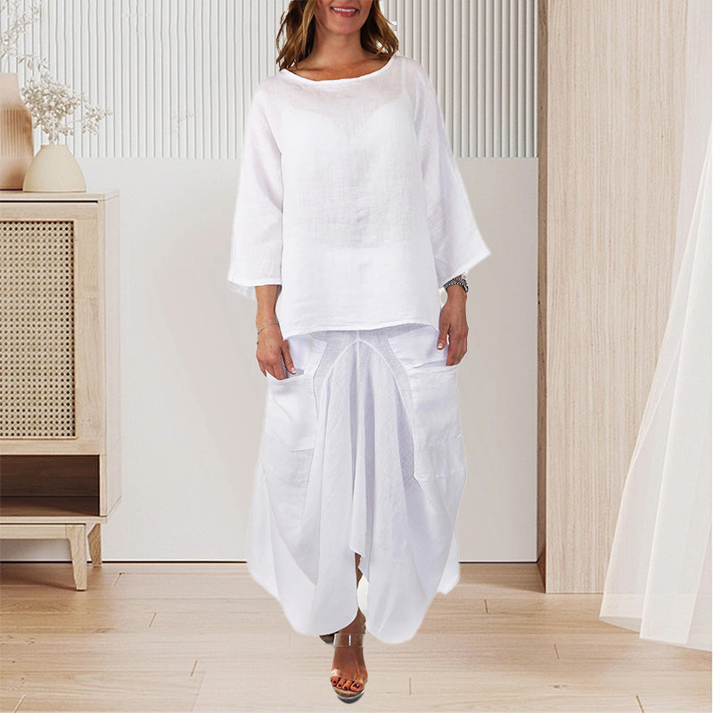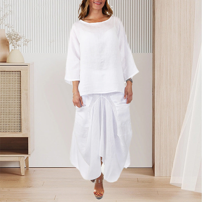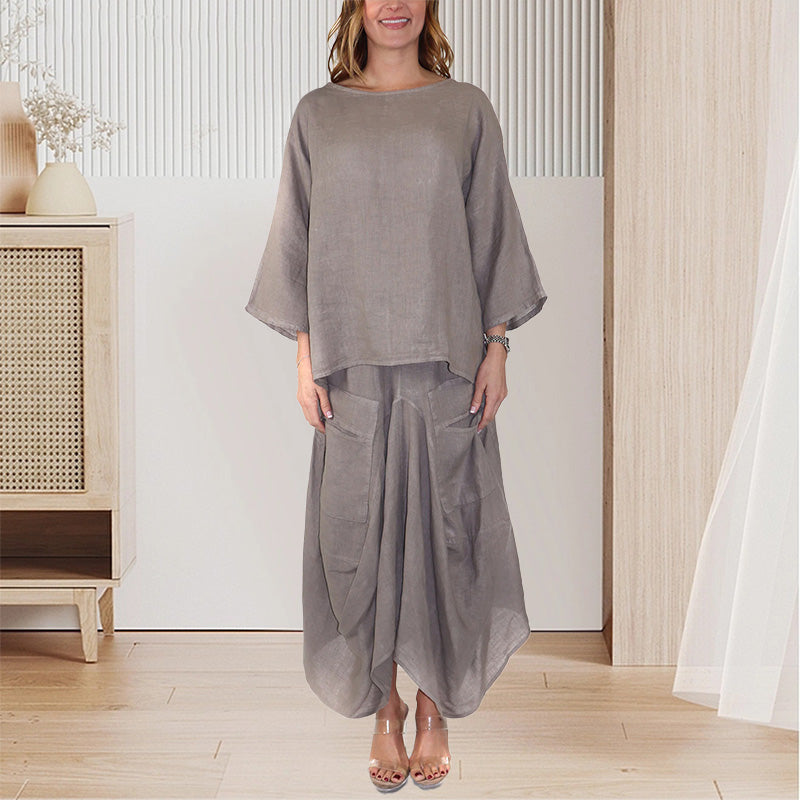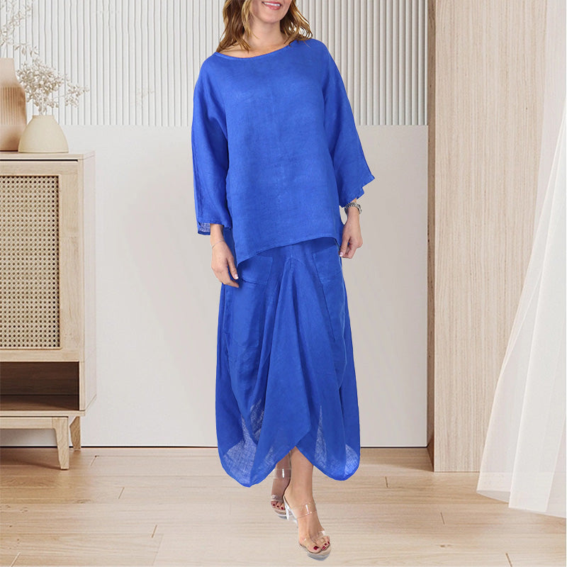 LAZA, KÉNYELMES SZABÁS: Ez a túlméretezett póló és szoknya szett puha, lélegző poliészter keverékből készült, amelyet egész napos kényelemre terveztek, akár otthon lustálkodsz, akár a városban.