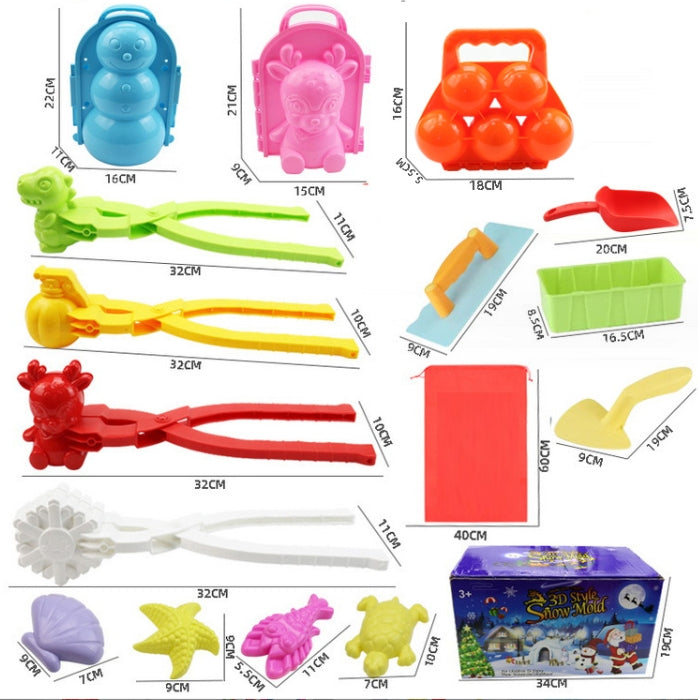A készlet tartalmaz egy hókacsa készítő, egy pingvin hóembert, egy szív csomagot, valamint egy tökéletes hógolyó formát. Kérjük, vegye figyelembe, hogy a színek véletlenszerűek lesznek.