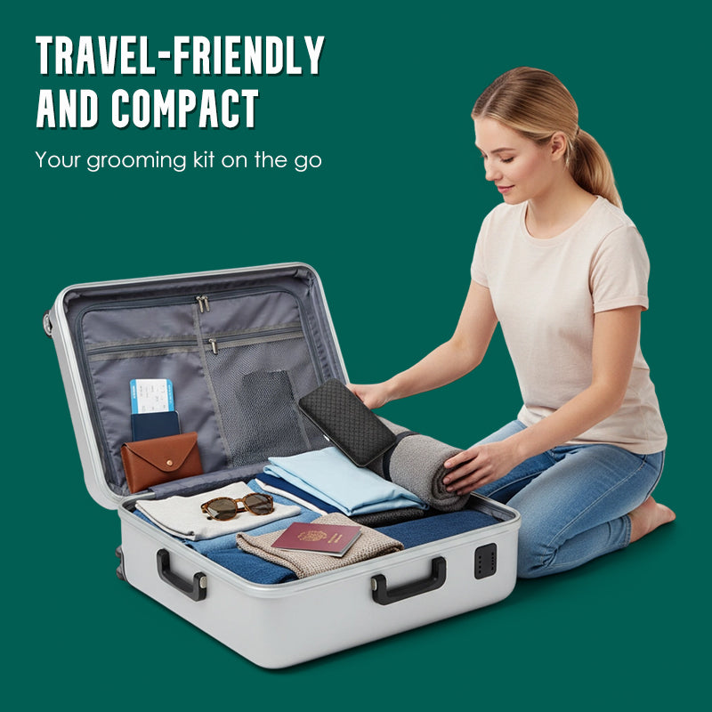 KOMPAKT ÉS HORDOZHATÓ KIVITEL: Vékony profiljával és könnyű tokjával ez a ápolószett tökéletes utazáshoz vagy a táskában való tároláshoz. Bármikor és bárhol kényelmesen folytathatja személyes ápolási rutinját.