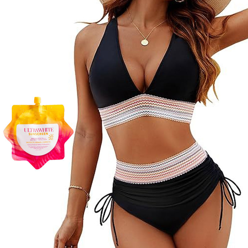 💃 Ünnepi akció 49% kedvezmény 💃 Kontrasztos, magas derekú bikini szett, hasformáló és alakformáló