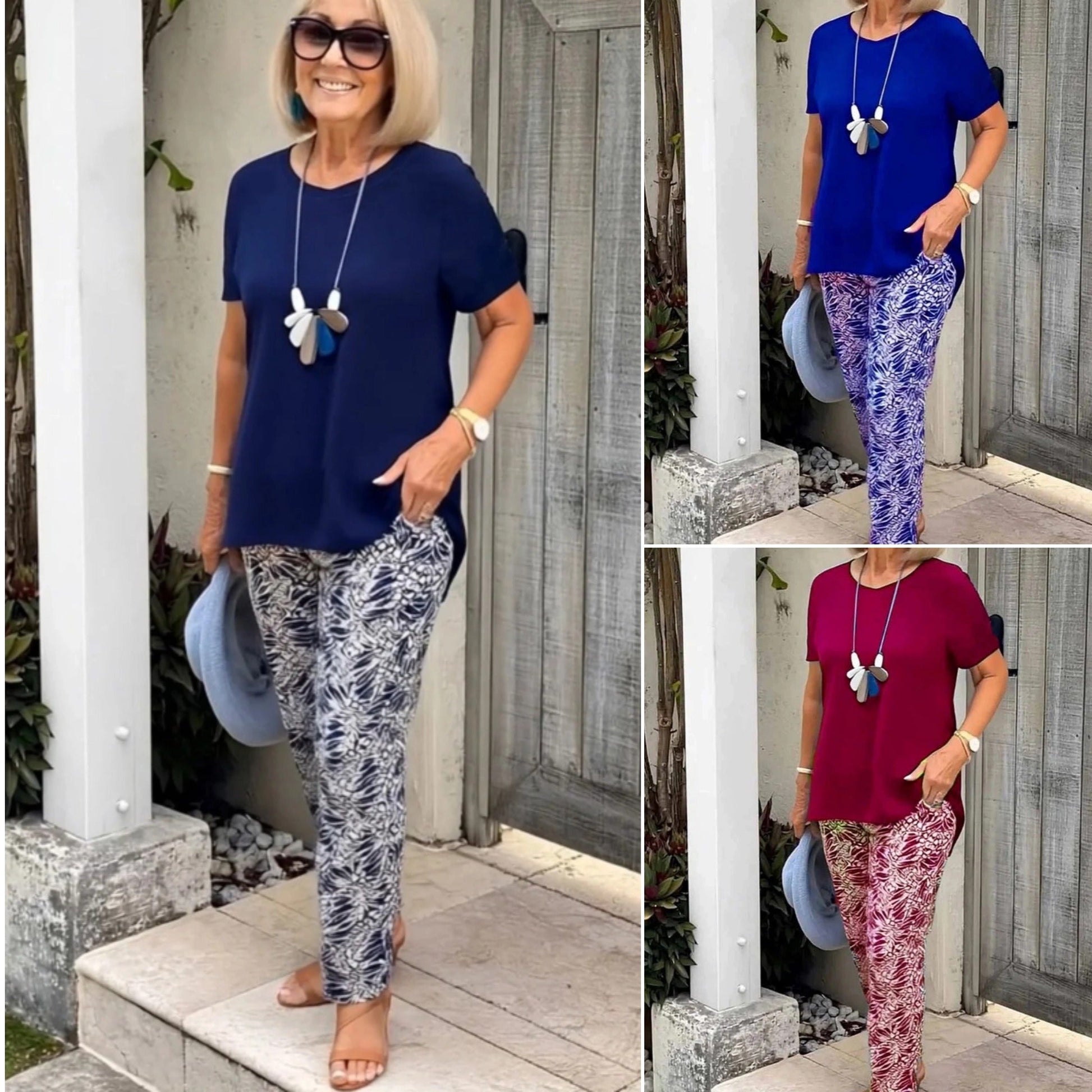 VERSATILITÁS ÉS STÍLUS: Ez a kétrészes szett nem csak praktikus, hanem stílusos is. Az egyszerű felső a díszesen mintázott nadrággal kombinálva elegáns és trendi megjelenést eredményez, amely tökéletes az okos vagy alkalmi öltözékekhez.