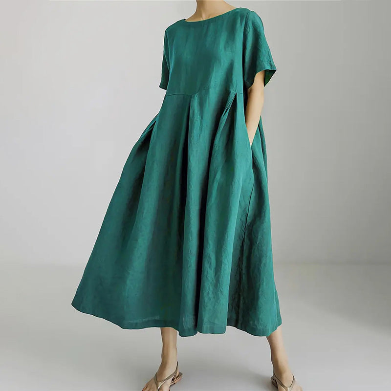 Csomag tartalmazza: 1 * Női alkalmi laza, laza, kerek nyakú ruha zsebekkel