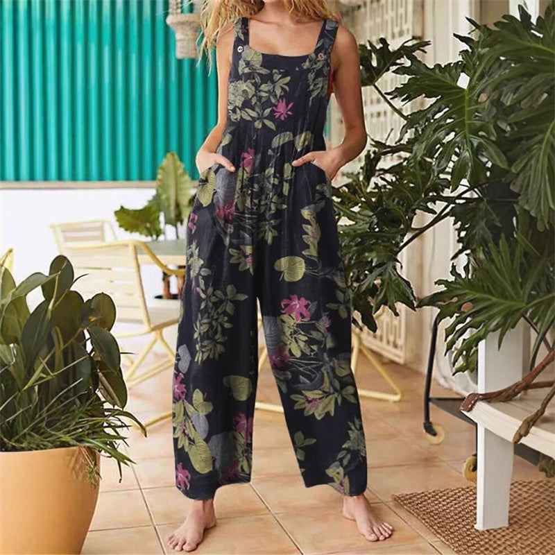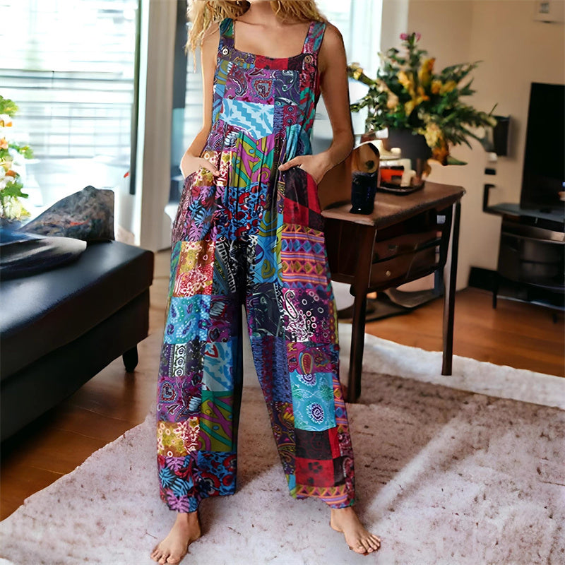 Stílusos és sokoldalú kialakítás – Ez a nyomtatott, széles szárú overál merész, feltűnő mintával rendelkezik, így tökéletes kiegészítője alkalmi ruhatárának. Bármilyen alkalomra könnyedén fel- vagy leöltöztethető.