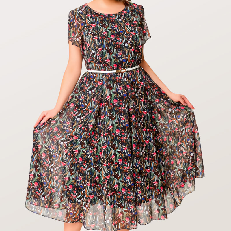 A virágos ruha finom fehér övvel a könnyed elegancia stílusa. Ezt a lenyűgöző ruhát úgy tervezték, hogy fantasztikusan nézzen ki és érezze magát. A kerek nyakkivágás és a rövid ujjak klasszikusak és sokoldalúak, a könnyű és légáteresztő anyag pedig kényelmes viseletet és mozgásszabadságot biztosít. A ruhát gyönyörű virágmintás minta díszíti, amely nőies és csillogó megjelenést kölcsönöz. A finom fehér öv kiemeli a derekat és kiemeli a sziluettet, ami még stílusosabbá teszi a ruhát. Akár egy kerti partira, akár egy villásreggeli randira készülsz, vagy a hétköznapi megjelenésedet szeretnéd feldobni, ez a ruha tökéletes választás. Ez egy kihagyhatatlan ruhatári darab, amely könnyedén sugározza az eleganciát és a nőiességet.