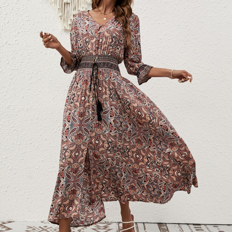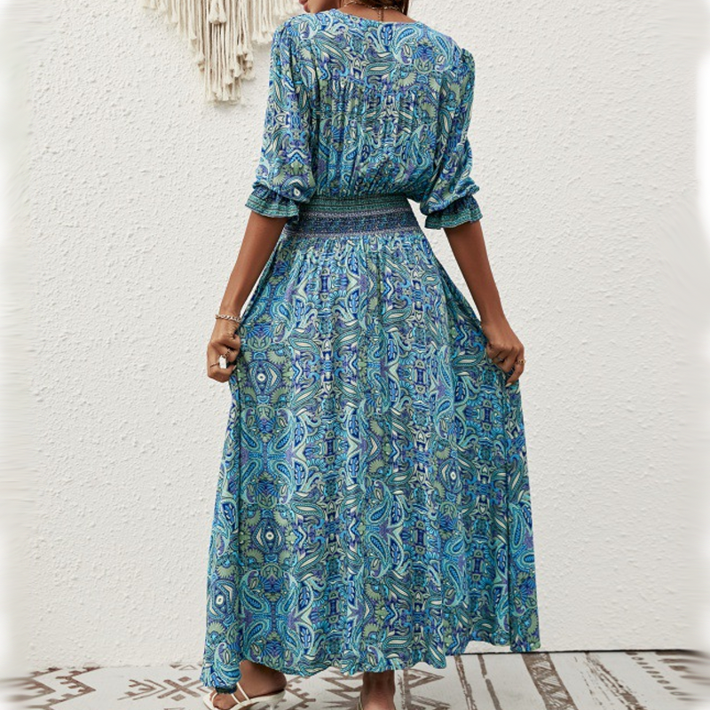 EGYSZERŰ ÉS STÍLUSOS DESIGN: A finom ujjak és a bohém stílusú nyomtatás egy kis laza eleganciát kölcsönöznek a ruhának, ami tökéletes egy divatos és laza megjelenés kialakításához. A V alakú nyakkivágás minden testalkathoz illik, és univerzális darab minden alkalomra.