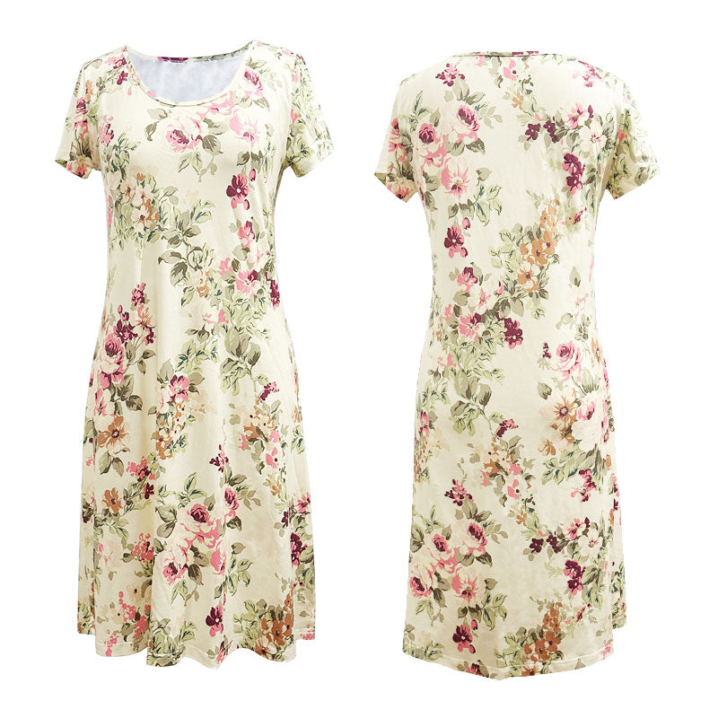 A csomag tartalma: 1 * Elegáns női ruha kerek nyakkivágással és virágmintával.