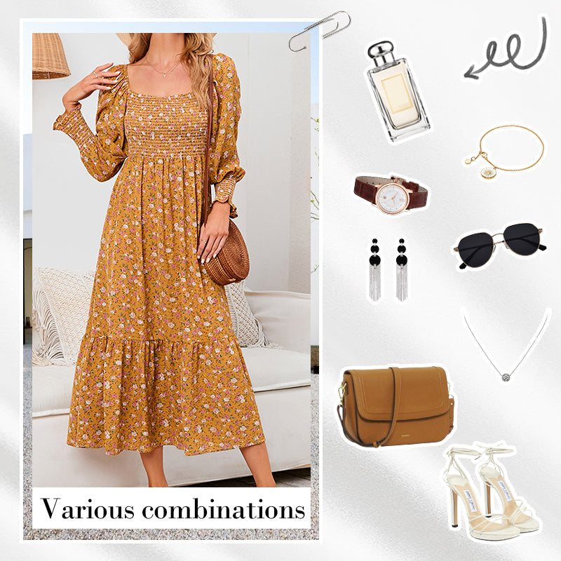 A csomag tartalmazza: 1* Női Elegáns Flared ujjú virágos ruha