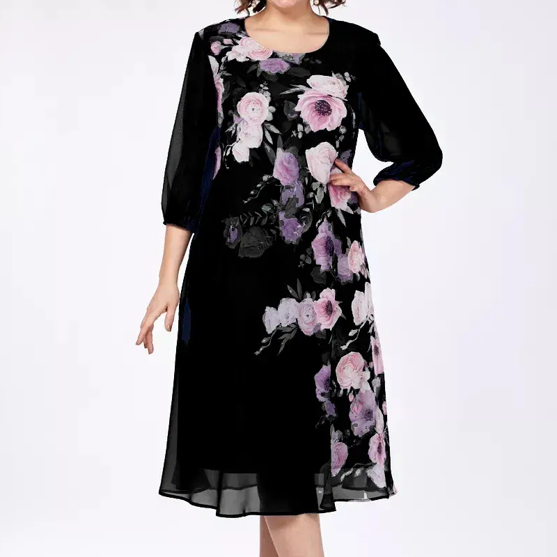 A csomag tartalmazza: 1 * Női elegáns virágos nyomtatás kerek nyakú ruha