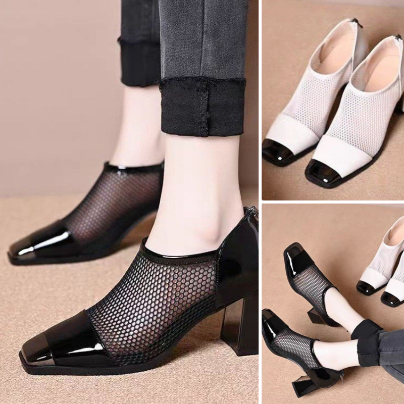1 x Női divat száz hálós Chunky sarok négyzet alakú cipők