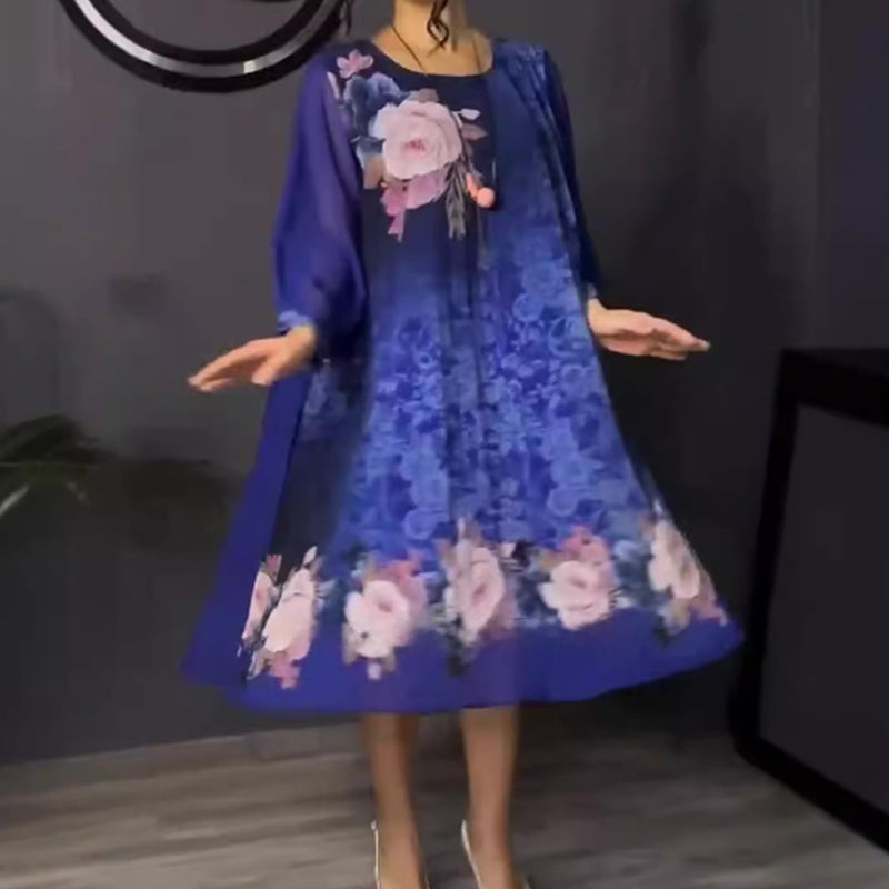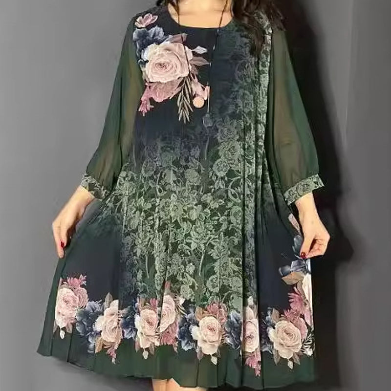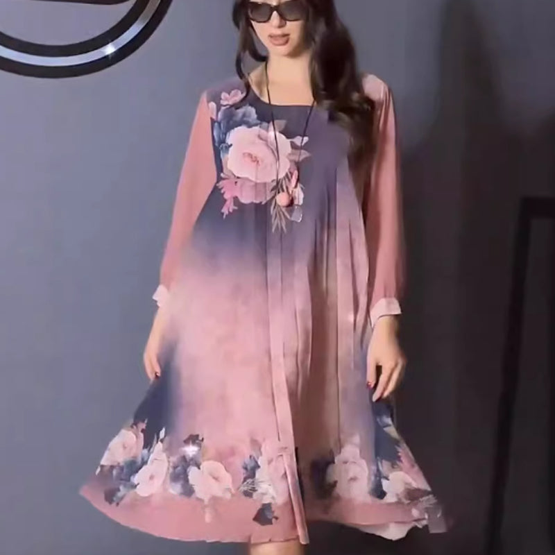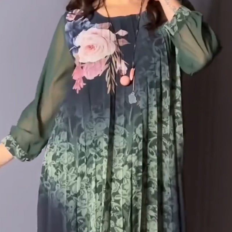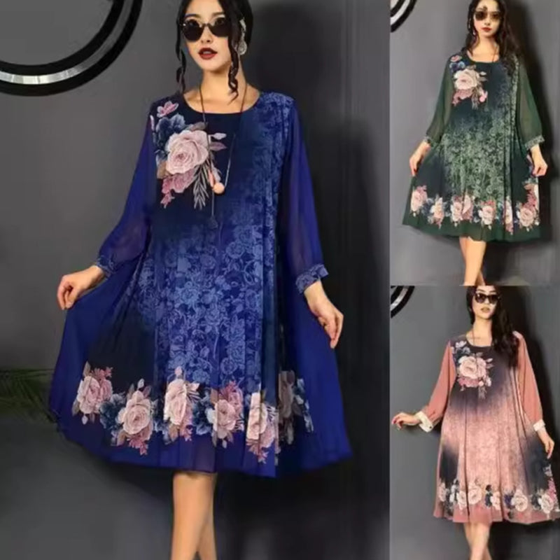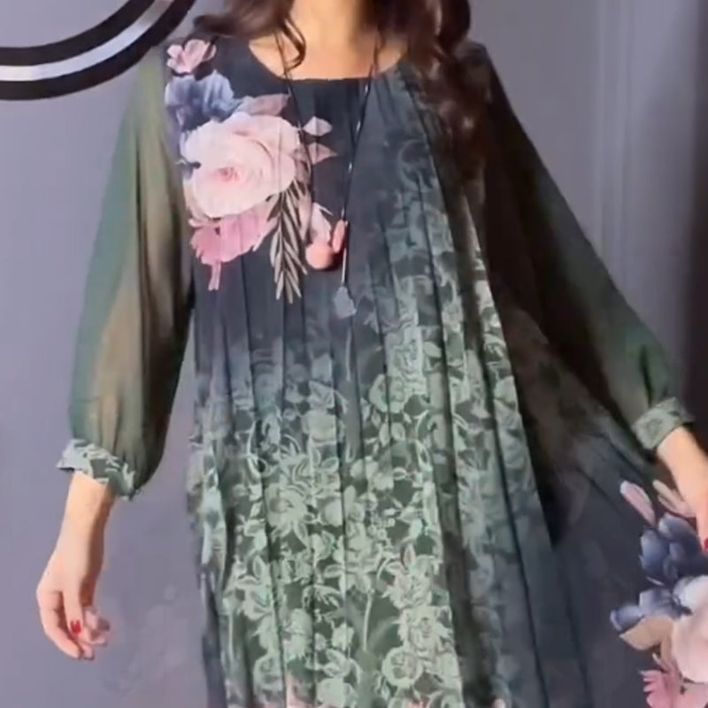 A csomag tartalma: 1 db *Női virágmintás, kerek nyakú, hálós ujjú ruha