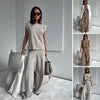 TELJES 2 DARABOS KÉSZLET - Tartalmaz egy sapka ujjú pólót és egy széles szárú ruhanadrágot, amely elegáns, azonnal viselhető ruhát kínál, amely leegyszerűsíti a ruhatári választást bármilyen alkalomra.