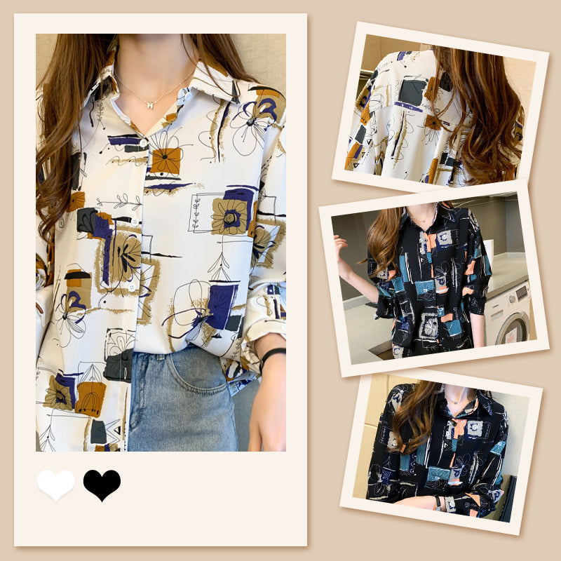 Csomag tartalmazza: 1 * Női retro divat nyomtatott hosszú ujjú ing