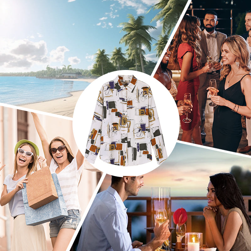VINTAGE IHLETÉSŰ DESIGN - Ez az ing gyönyörű vintage nyomtatással rendelkezik, amely egy csipetnyi klasszikus bájt kölcsönöz a ruhatárának, így tökéletes alkalmi és különleges alkalmakra egyaránt.