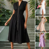 SEXY V-NECK – Növeli a női vonzerőt: A mély V-nyakkivágással tervezett ruha kecsesen kiemeli a kulcscsontot és a dekoltázst, könnyedén elegáns sziluettet alkotva. Akár egy hivatalos estélyen, akár egy elegáns nappali eseményen veszel részt, a V kivágás épp a megfelelő figyelmet vonzza, és a kifinomultságot egy csipetnyi csábítással egyensúlyozza.