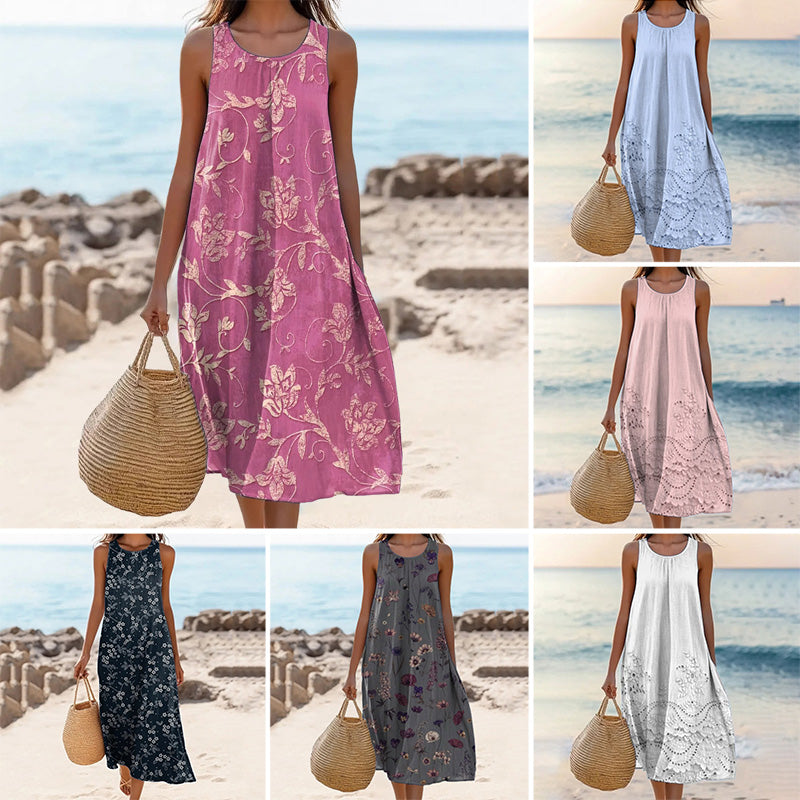 A csomag tartalma: Szett: 1* Női lezser ruha kerek nyakkivágással és mintával.